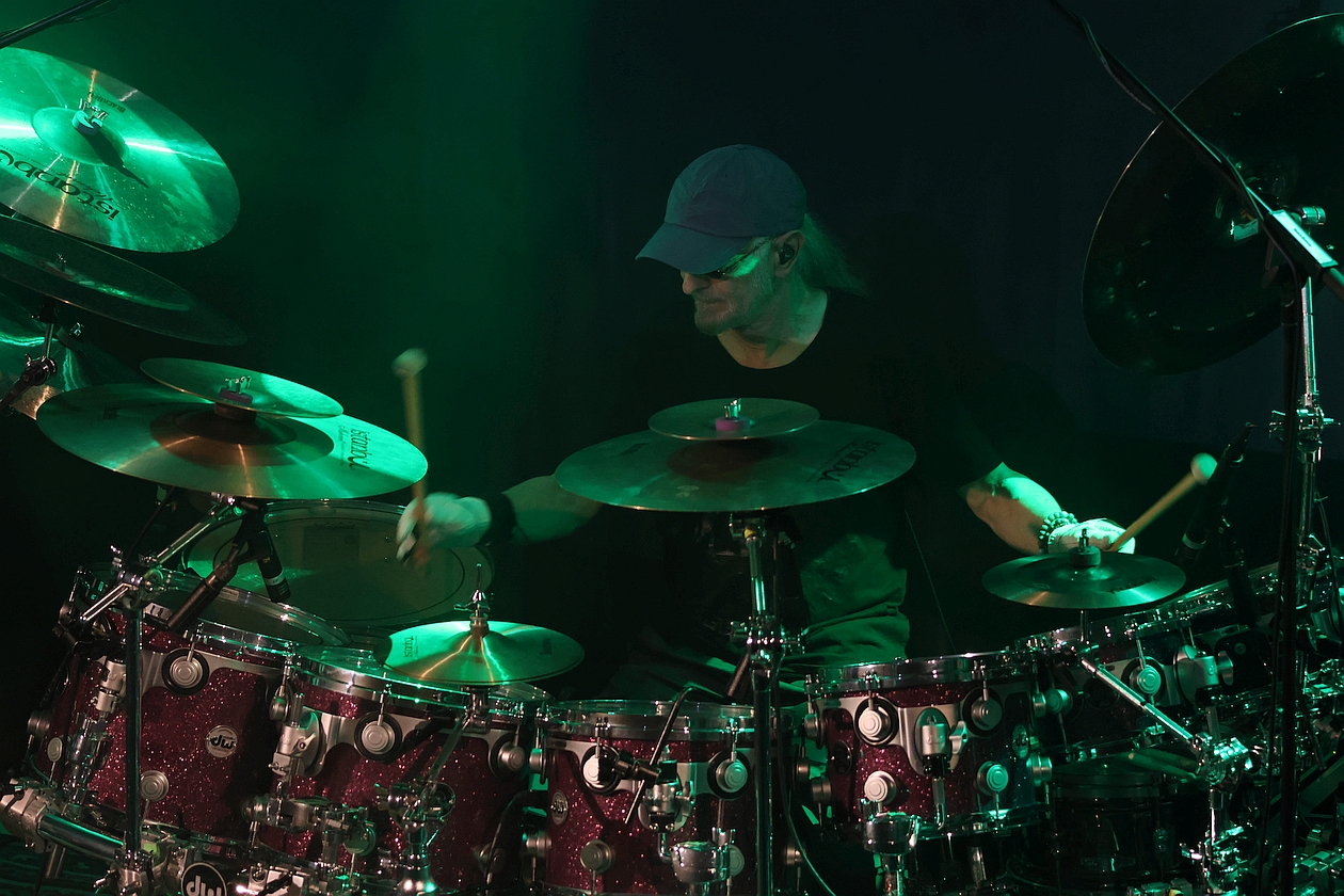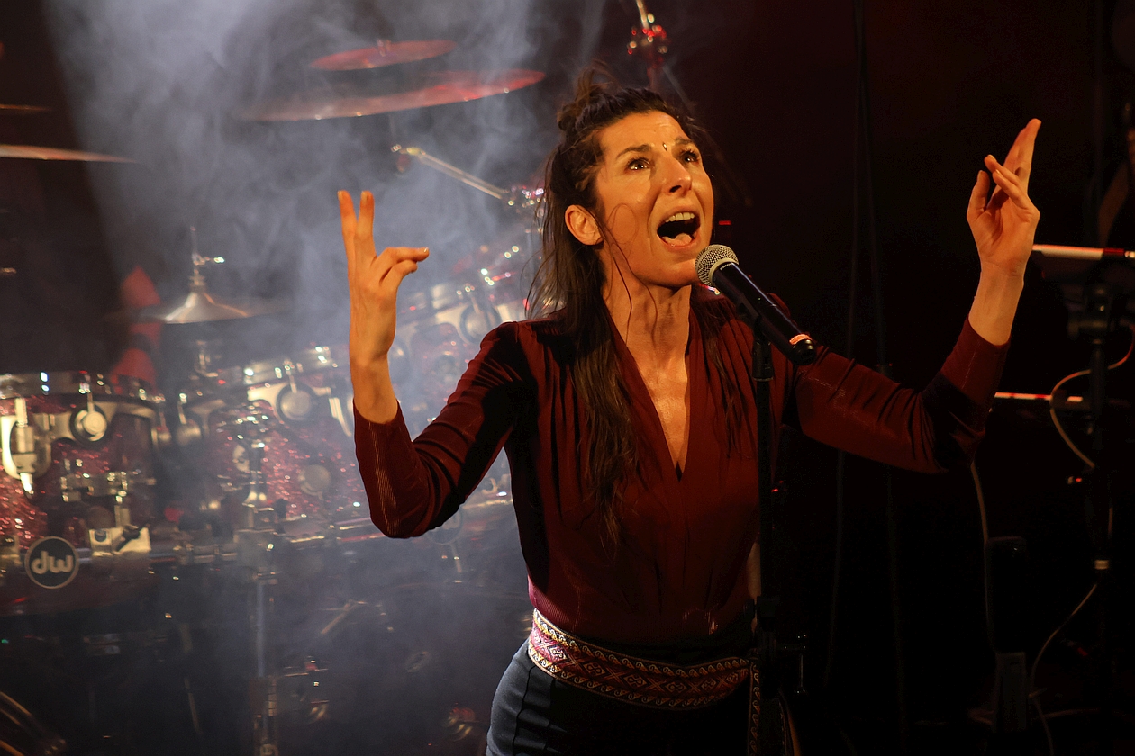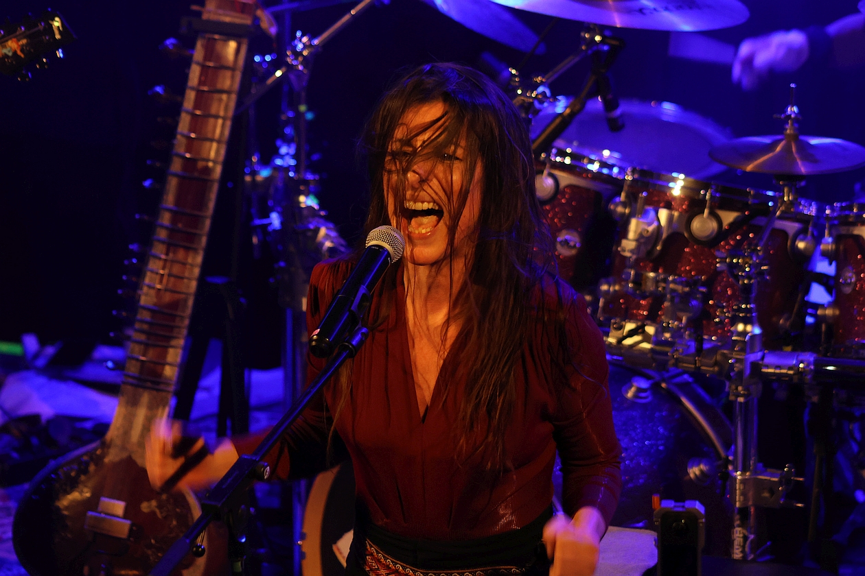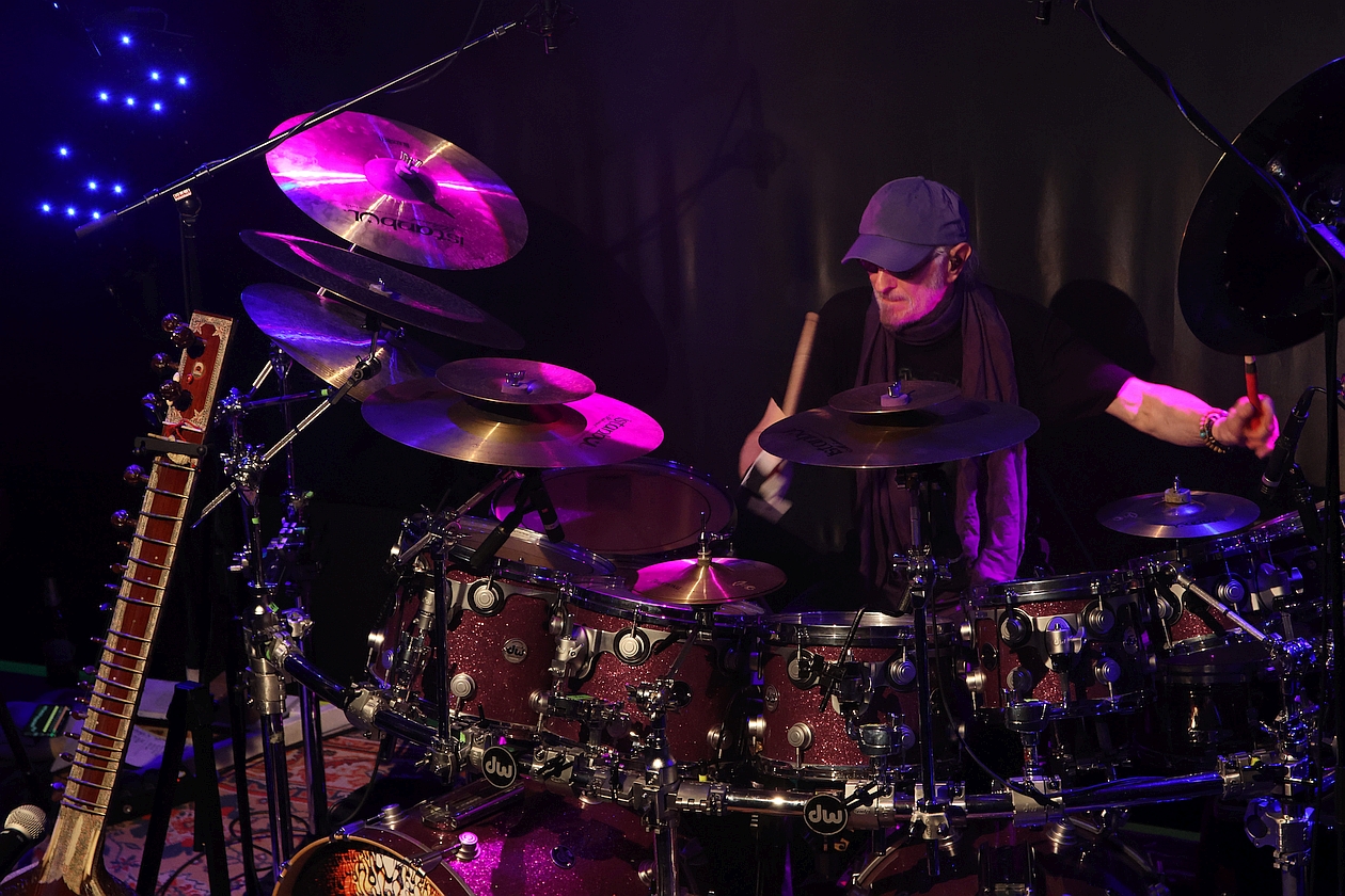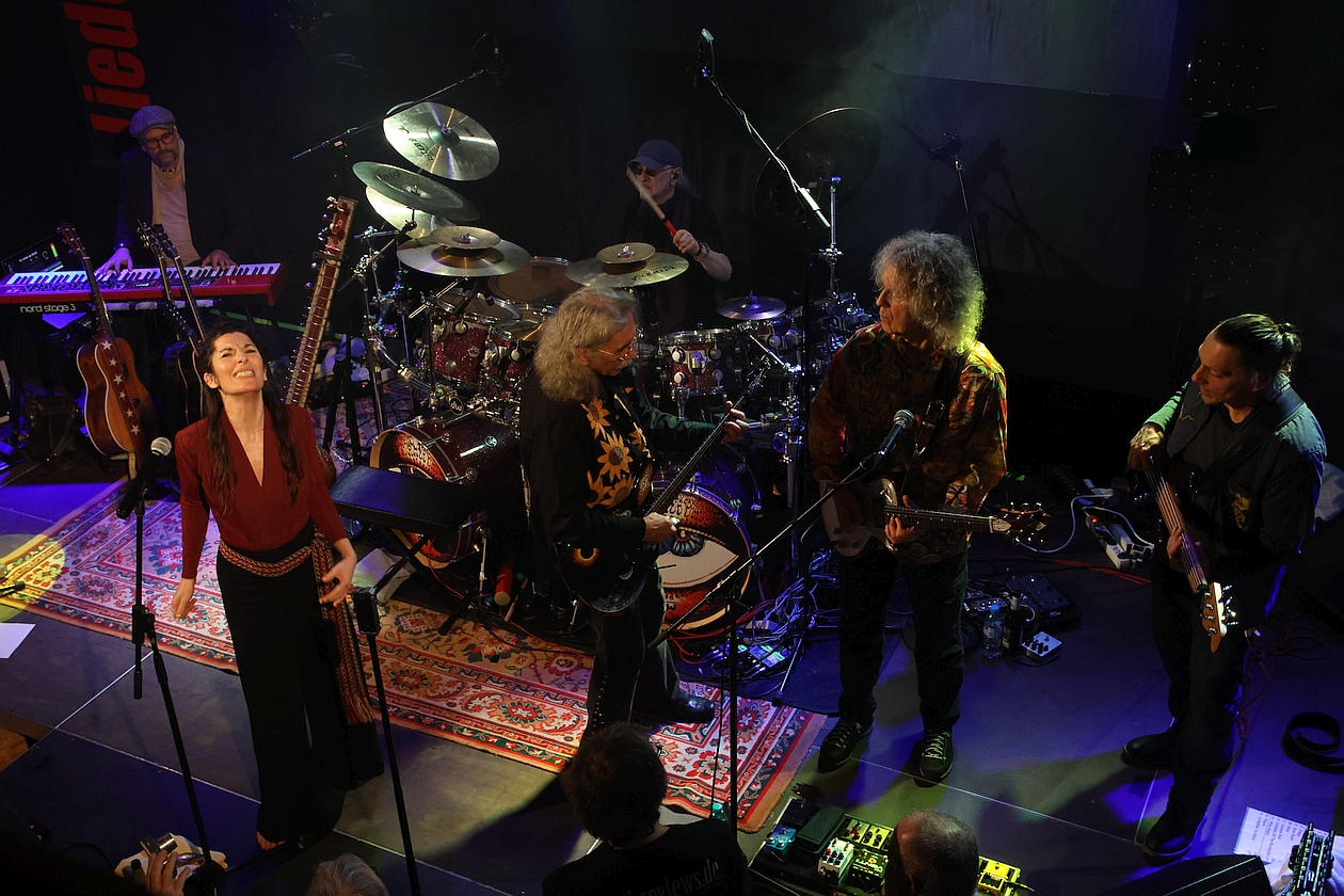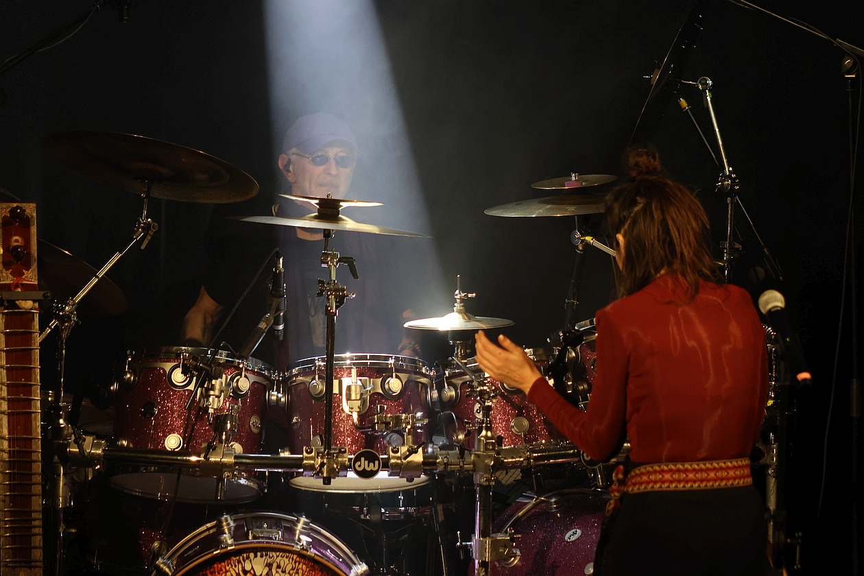 Gerade die breit angelegten Strukturen zwischen weltmusikalischer (Sitar-)Schönheit, psychedelischer Verspieltheit, rockiger Dynamik und harmonischer Hingabe – allesamt von leidenschaftlichen Musikern und einer charismatischen Frontfrau vorgetragen, nehmen das Publikum von Anfang an gefangen. Noch dazu verblüfft nicht nur ein gigantisches Schlagzeug, das opulent fast die halbe Bühne einzunehmen scheint, und dann von MANNI VON BOHR auf eine Art und Weise gespielt wird, dass es einem schwindelig wird. Die absolute Steigerung dieses Drumstick-Zauberers entlädt sich allerdings erst im zweiten Konzertteil beim riesig-eruptiven Schlagzeug-Solo auf „I Was Angry“.