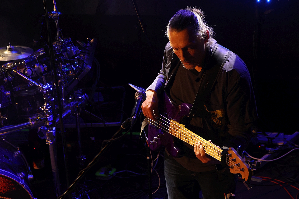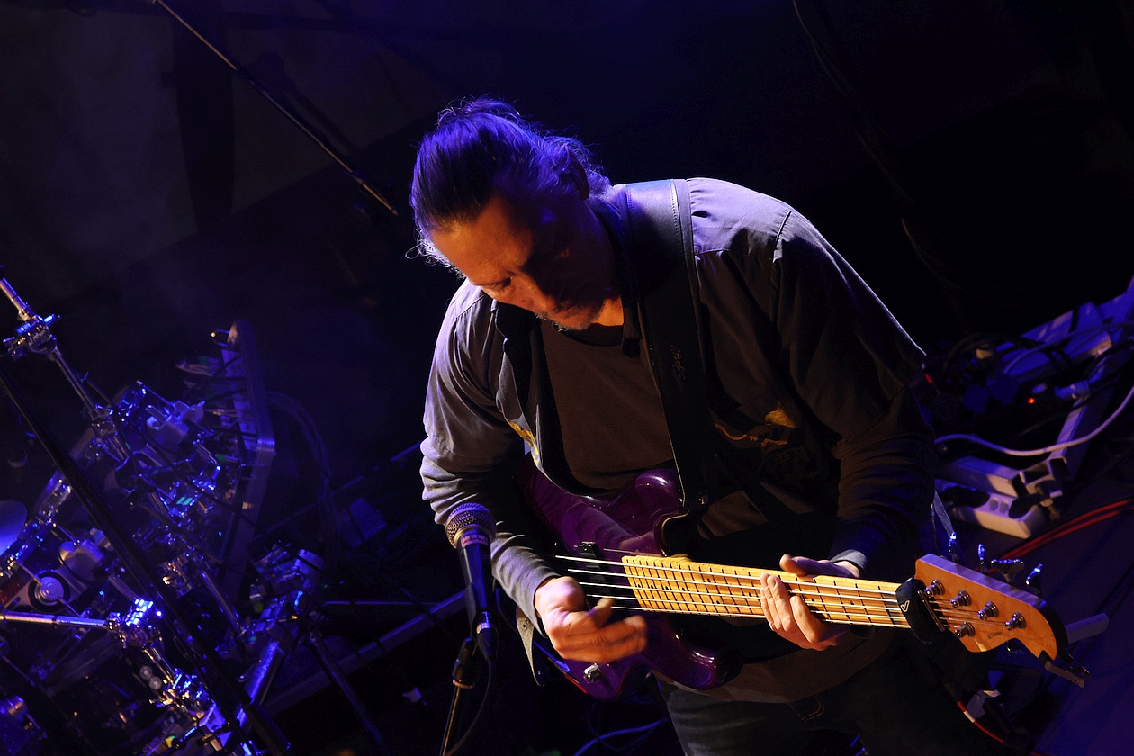 Würde Maestro von Bohr sich während des Drummings noch sein T-Shirt vom Leib reißen, man hätte den Eindruck, dass hier ein CARL PALMER eines seiner bei ELP immer heiß geliebten Soli von sich geben würde. Auch bekommen während des 18-minutigen Stücks Keyboarder Thomas Plötzer und Bassist Carlos Palmen ausgiebige Solo-Momente eingeräumt. Freiräume, die Gitarrist Michael Dommers in dem Falle nicht bedarf, denn er hat während des gesamten Konzerts immer wieder die Möglichkeit, das Publikum von seinen vielfältigen Spieltechniken zu überzeugen, die neben herrlicher Eigenständigkeit mitunter gar Anklänge an David Gilmour und Mark Knopfler erkennen lassen und so beim Publikum genau das gleiche Wohlgefühl entflammt, wie er es beim betreten des Kulturzentrums Sankt Barbara in Lichtentanne empfand.
