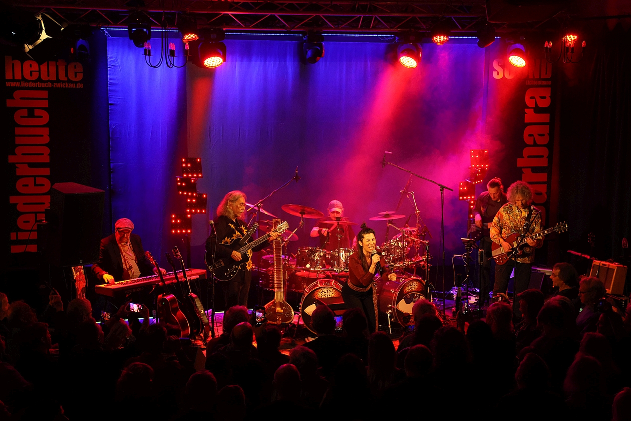 Manchmal gehört zu einem Konzert, das mit einer riesigen Überraschung beginnt und einer ebenso riesigen Begeisterung endet, eine Vorgeschichte, die unbedingt erzählt werden sollte – so wie die vom 14. Februar 2026, als die Krautrock-Legende (Oh ja, die darf man tatsächlich so bezeichnen!) BRÖSELMASCHINE samt ihres Gründungsmitgliedes und zugleich 'besten Gitarrenlehrers Deutschlands' PETER BURSCH, tief in den Osten, aber dort in den Westen von Sachsen, nach Lichtentanne kam. Zwar ritten sie dabei nicht auf einem indischen Kamel, aber mit brachten sie es - in seiner ganzen psychedelischen wie weltmusikalischen Schönheit!
