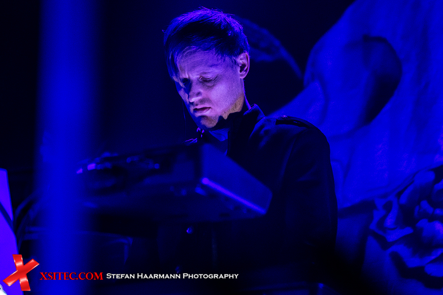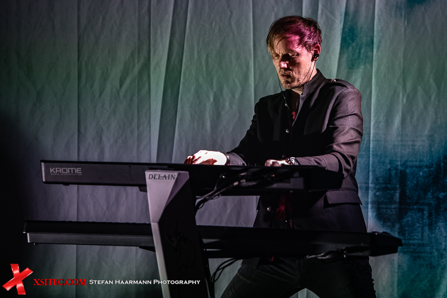 Die Nervosität, die eine Tour und insbesondere ein Tourauftakt mit sich bringt, ist der Band nicht anzumerken. In der Folge geht es mit „Virtue And Vice“ sowie „One Second“ vom in Kürze zu erwartenden, neuen Album, routiniert weiter. Neben dem wabernden Nebel des Grauens zucken immer wieder Blitze der allgegenwärtigen Stroboskope von der Bühne, die die Szenerie teilweise in ein gespenstisches Licht tauchen und die Höchststrafe für alle anwesenden Fotografen bedeuten.