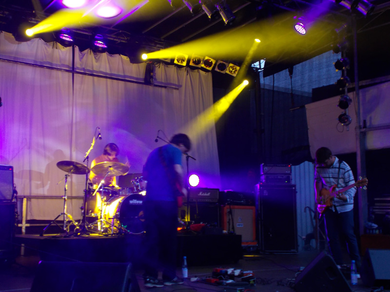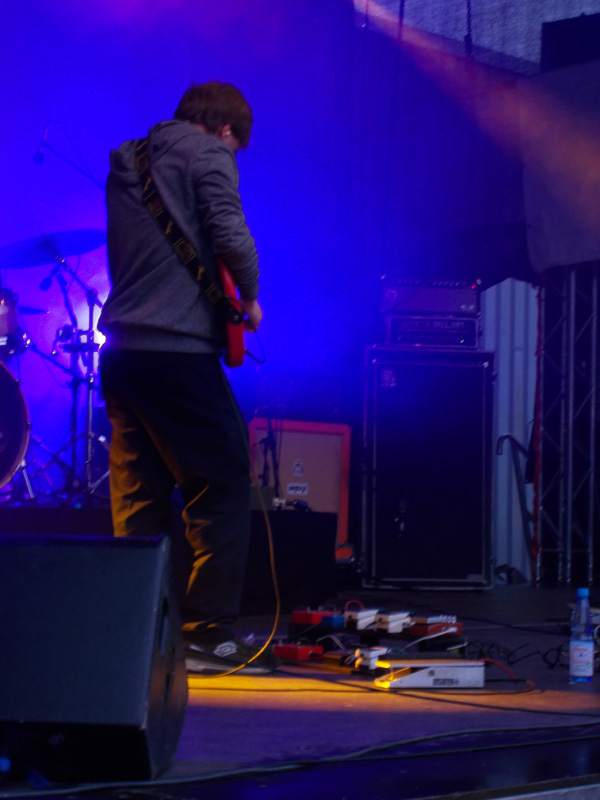 Ganz anders dagegen mutet das Trio Papir aus der dänischen Landeshauptstadt an, welches vom dortigen kreativen Durcheinander offenbar wahnsinnig viel in sich aufsaugt und in den eigenen „Liedern“ nachklingen lässt. Ja, es sind Lieder – aber was für welche! Es sind Ausflüge ins Grüne, ins Blaue, ins Morgen und ins Übermorgen, behutsam sich entwickelnd, doch nie unentschlossen, sondern immer mit einem Weg vor Augen. Selten hat die Stilbezeichnung „Psychedelic Rock“ den Nagel so treffsicher im Holz der Genre-Schubladen versenkt! Gitarrist Nicklas Sørensen droht beim völligen Sich-Hineinsteigern in sein Spiel bald die Halsschlagader zu platzen, während Christoffer Brøchmann Christensen am Schlagzeug und Christian Becher Clausen am Bass an einem Rhythmus-Teppich knüpfen, auf dem sich nach Lust und Laune herumtollen lässt – der hält (fast) alles aus! Den meisten so genannten „Post Rock“ Bands hat Papir eine fröhliche Abenteuerlaune voraus, die in Kombination mit energischer Spielfreude einfach ansteckt und viel Freiheit atmet. Die Band ist kurz nach ihrem Auftritt so außer Atem, dass sie kaum etwas herausbekommt, als sie einiges Lob erntet – selbiges ist auf dem Festival-Gelände auch noch zwei Tage später zu vernehmen. Allen vorschlauen Weissagungen über die kreative Sackgasse des oben genannten Genres zum Trotz beweisen die Kopenhagener, dass Instrumental Rock mitreißend, spannend und voll positiver Energie sein kann. Bravo!
