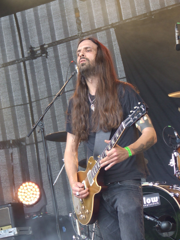 Mother Of God aus Schweden lassen beim Soundcheck Schlimmes befürchten, so unentschlossen wirken die jungen Musiker – doch was das Quartett dann in der Folge darbietet, gehört definitiv zu den Überraschungen des Festivals, auch wenn es alles andere als einfach ist, die Band zwischen 70er Rock, Neunziger-Alternative und experimenteller Härte zu verorten. Alles halb so wild, die Jungs vermitteln Freude an ihrer Musik, mit der sie im Handumdrehen in träumerische Gefilde entführen, nur um anschließend in bewährt schwedischer Retro-Manier durch das Unterholz zu pflügen. Rote Fäden entwirren sich in alledem zwar nicht von alleine, doch der zunächst unscheinbare Frontmann Daniel Nygren erweist sich als Sänger mit erstaunlicher Ausdrucksbreite und -tiefe. Und selbst wenn z.B. ein Riff mal etwas mehr an Cream erinnert, lassen die Schweden keine Zweifel daran aufkommen, dass sie ihren eigenen Weg einschlagen und dabei den Hörern mehr abverlangen wollen, als Standards abzunicken. Sympathie-Punkte sammeln sie bei mir nicht nur für den starken Auftritt, sondern auch für den coolsten Namen des Festivals. Mother Of God – das mag ich mir als Ketzer gerne auf der Zunge zergehen lassen... ;-)