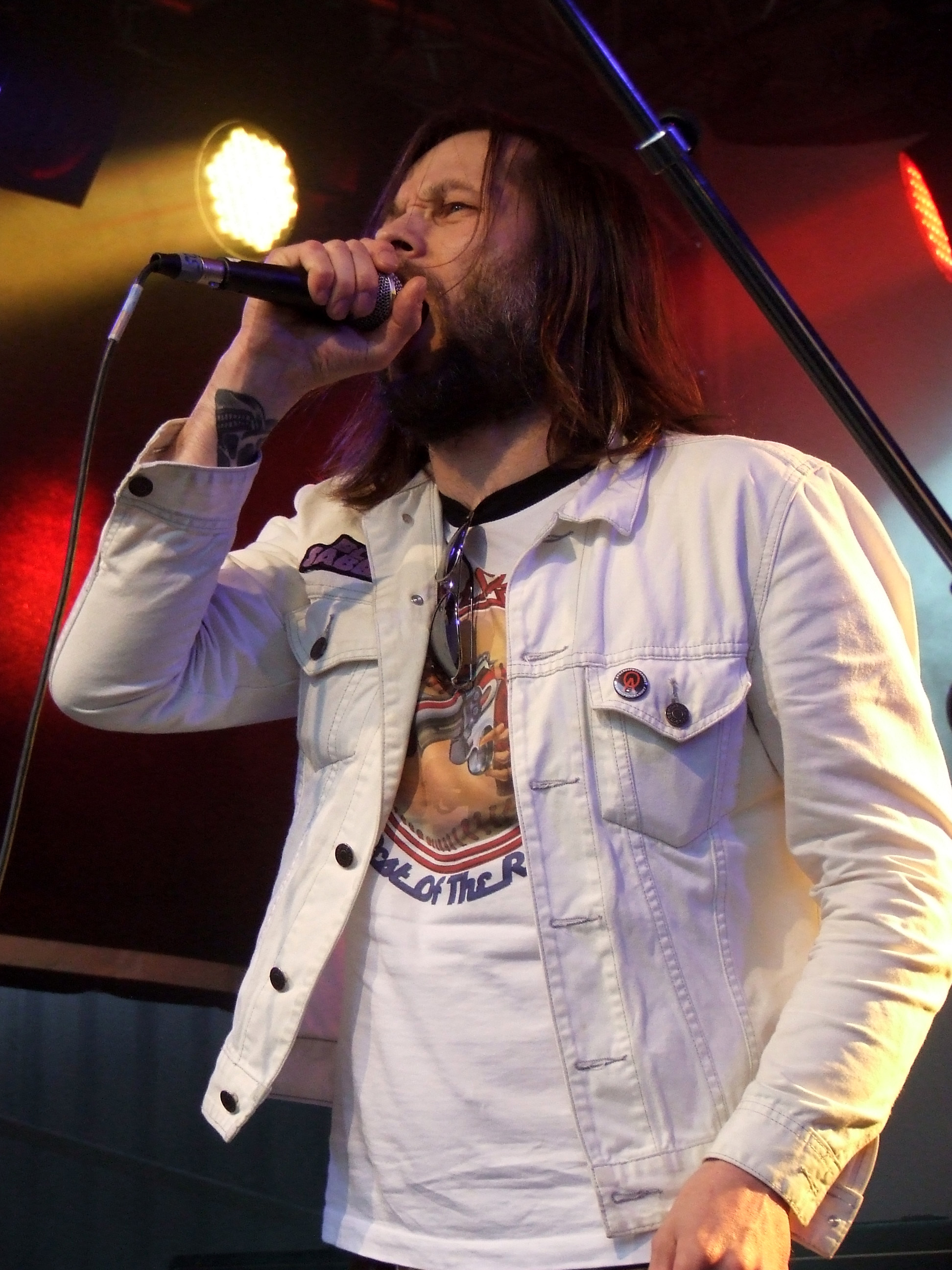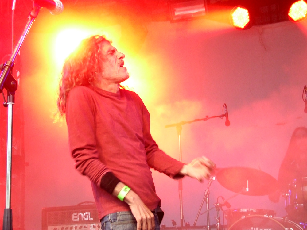 BUSHFIRE haben vor einem Jahr mit ihrem energischen Auftritt überrascht. Heute muss ich ihren eingängigen Songs vom Einlass her lauschen, an dem sich am frühen Abend eine lange Schlange gebildet hat. Darin bildet ein volltrunken, übermütiger Jungspund die krakeelende Ausnahme zwischen ansonsten sehr entspannt wirkenden Alt-Hippies, Underground-Rock-Fans, Metalheads und kauzig anmutenden Gestalten zwischen ungefähr 20 bis 60 Jahren.