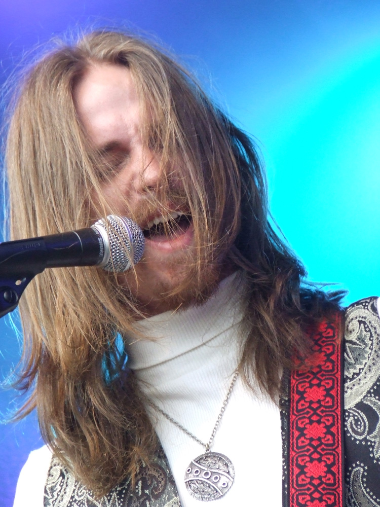 Zum wiederholten Mal sind THE MUGGS aus Detroit ins Siegerland gereist, um ihren bluesigen Hard Rock der Marke LED ZEPPELIN ebenfalls mit viel Groove und guter Laune unter die Freaks zu wuchten, in deren vorderen Reihen sich bei manchem Begeisterung Bahn bricht. Mir ist die Band komplett unbekannt, aber nach wenigen Minuten kann ich nicht anders, als sie im Oberstübchen unter „coole Säue“ beziehungsweise „Sympathiebolzen“ einzusortieren und ihren Namen vorsorglich mit Edding zwischen meine Lauscher zu schreiben – ungefähr dort, wo mir immer größere Lücken deutlich werden:Bbei den Ursprüngen des (Hard) Rock, denen ich doch nun im mittleren Alter endlich mehr Beachtung schenken sollte.