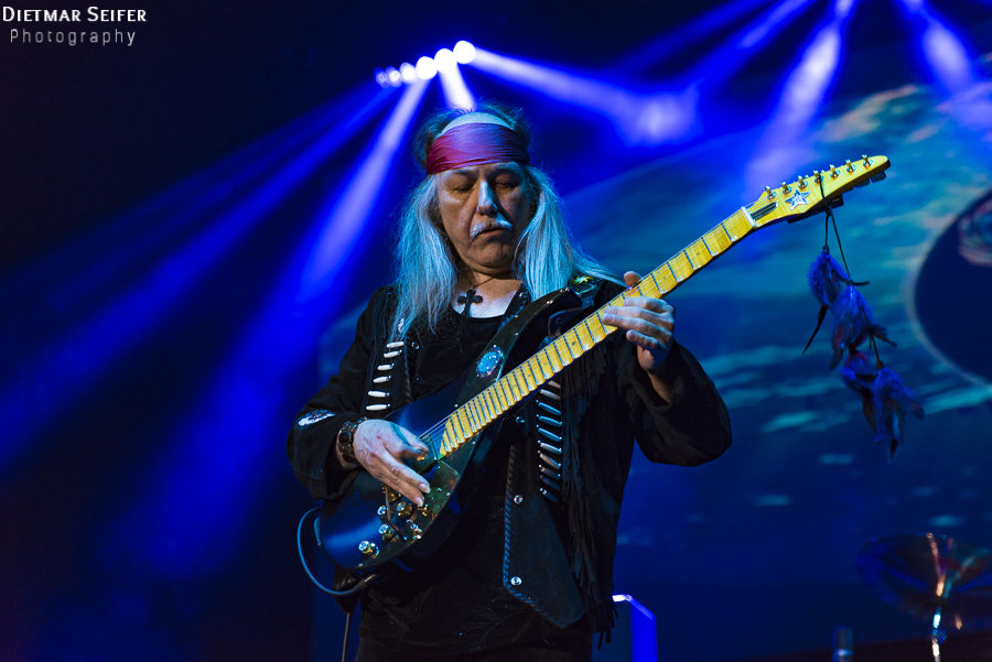 Pünktlich um 19:30 Uhr durfte Uli Jon Roth, der ehemalige Gitarrist der Scorpions (`73 – `78), das Konzert eröffnen. In seinem Line-Up konnte ich Musiker erkennen, die ich bereits vom German Kultrockfestival 2017 kannte. Quasi die Hannover-Connection. Die Musiker der Band Crystal Breed, die schon länger mit Rockgrößen wie Uli Jon Roth und Peter Pankas Jane zusammenarbeiten und touren, sind bühnenerfahren und bereits selbst bekannte Künstler. So durfte Niklas Turmann nicht nur neben Uli Jon Roth in die Saiten greifen, sondern auch sein Gesangstalent mit einigen älteren Scorpions Songs präsentieren. Mit „We’ll Burn In The Sky“ ehrte der 63-jährige Roth nach einer bewegenden Ansprache seinen Anfang Februar verstorbenen Bruder Zeno Roth. Im ersten Teil des Konzertabends wurden von Roth 6 Songs gespielt, die seine Ausdrucksstärke und musikalische Erfahrung zum Ausdruck brachten.
