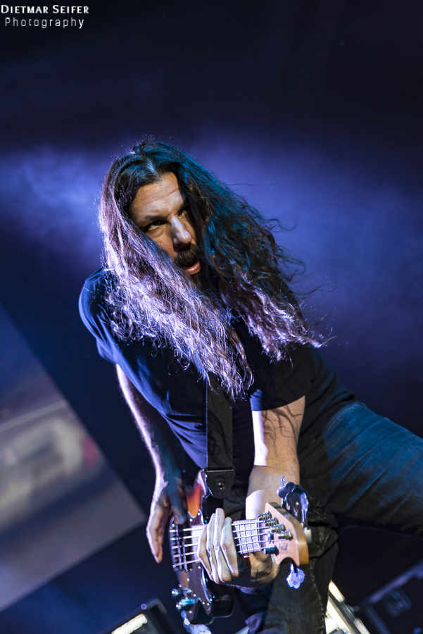 Nach einer kurzen Umbaupause, in welcher mir dann auch bewusst wurde, dass jeder Künstler sein eigenes Line-Up hatte, ging es dann mit John Petrucci etwas rauher weiter. Petrucci, der für seine herausragende Wechselschlagtechnik (alternate picking) bekannt ist, kennt man als Mitbegründer der Progressive-Rock- und Metal-Band Dream Theater. Begleitet wurde er neben einem Bass von seinem Dream Theater Kollegen Mike Mangini an den Drums. Petrucci hat einfach Metal im Blut, was man seinem Set auch anhört. Aber wer annahm, dass John heute Songs von Dream Theater zum Besten gibt, der wurde eines Besseren belehrt. Bis auf den neuen „Happy Song“ haben nur Songs seines Soloalbums „Suspendet Animation“ den Weg in seine Set-List gefunden. Die Fans sind von der Saitenexplosion des gebürtigen New Yorkers einfach begeistert. Doch nach ca. 40 Minuten und 6 Songs ist es auch hier leider vorbei. Petrucci feiert in diesem Jahr übrigens seinen 50’en Geburtstag.