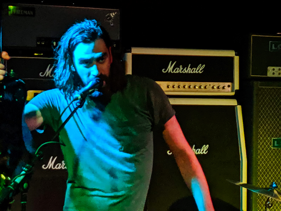 Das war auch besonders wichtig für die Hauptband des Abends: KING BUFFALO. Eine Band, die hier auf Musikreviews.de aufgrund ihres leicht aufgekommenen Hypes etwas kontrovers beleuchtet wurde. Deren Album ‚Longing to be the Mountain‘ ist zudem für mein Dafürhalten ein wenig zu schlecht weggekommen. Sei‘s drum, mir gefällt‘s sehr und deren Auftritt hat die Qualität ihrer Platte(n) nochmals ganz dick unterstrichen. Natürlich hat das Trio aus New York vornehmlich Songs ihres aktuellen Longplayers zum besten gegeben. Mittels sehr atmosphärischen, teils psychedelischen Sounds, gepaart mit Stoner-Einflüssen, baut King Buffalo eine bedrohliche Soundwand nach der anderen auf, um diese mit explosiven Gitarren wieder zum Einsturz zu bringen. Auch wenn sich im Laufe des Gigs eine Box verabschiedete und in den Basslagen zum Teil nur noch knarzende Geräusche von sich gab (man möge mir meine triviale Schilderung aufgrund meiner mangelnden Kenntnisse hier verzeihen), war dies nur eine nebensächlich zu betrachtende Störung. Der Auftritt der New Yorker wurde seitens des Publikums verdientermaßen mit den hierfür üblichen Reaktionen quittiert. Nach einer Zugabe war dann dieser durchweg gelungene Abend leider mal wieder viel zu schnell zu Ende.