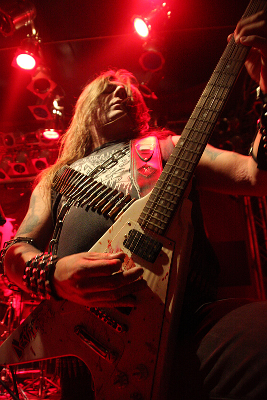 Dass KETZER nicht nur auf Platte die beste Band im deutschen Underground sind, belegen sie auch mit ihrem Auftritt eindrucksvoll. Das mit Abstand anspruchsvollste Songmaterial des ganzen Abends wird ultratight dargeboten und so ist es kein Wunder, dass die Band ordentlich abgefeiert wird. Um die Show zu etwas Besonderem zu machen, zündet man immer wieder Pyros - das sieht man im Turock eher selten. Nach dem Intro folgt das Triple, das auch das Album eröffnet: "Endzeit Metropolis", "A Requiem For Beauty" und "The Fever's Tide", bevor es mit "Warlust" zum Debüt "Satan's Boundaries Unchained" geht. Sowohl musikalisch, wie auch optisch enthalten sich KETZER jeglicher Klischees, man ist einheitlich in staubigem Schwarz gekleidet und auf dem Backdrop prangt das "Endzeit Metropolis"-Artwork überdimensional. Im weiteren Verlauf werden außer dem Instrumental "Farewell, Fade Away" alle Songs des neuen Albums gespielt, vom Debütalbum kommen insgesamt fünf Nummern zum Zuge, darunter natürlich die Highlights "The Fire To Conquer The World" sowie der Titeltrack. Dass nach gut einer Stunde Schluss ist, ist angesichts des musikalischen Hochgenusses ein bisschen schade, trotzdem ist der Auftritt natürlich die Krönung eines Abends, der verdammt viel Spaß macht. Auch der Band, der man ansieht, dass ihr sowohl das Spielen der Songs, als auch der Zuspruch des Publikums an diesem Abend diebische Freude machen.