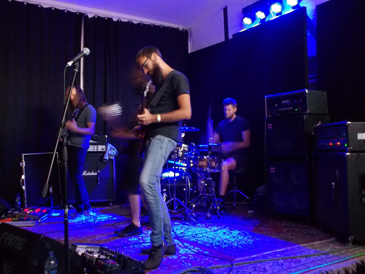 „Wenn dir PLANISPHERE gefallen haben, dann dürften NOORVIK auch was für dich sein“, werde ich vom fachkundigen Publikum auf eine weitere Kölner Instrumental-Band eingeschworen. Deren Ansatz ist dunkler und schwerer, und entwickelt mit gehörigem Drive eine eigene hypnotische Kraft. Weniger Prog, dafür mehr metallische Härte inklusive Doom-Anleihen. Ähnlich wie bei STROMKASTEN gilt auch hier: Die Musik gefällt auf Anhieb, macht es allerdings auch niemandem schwer, der mit Post Rock / Metal etwas anfangen kann.