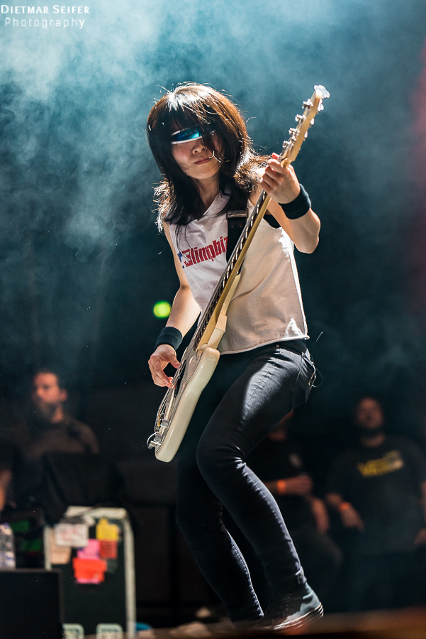 Der Innenraum jedoch war zum Bersten voll. Hier galt es vorne und hinten Augen zu haben. Nach bereits vier Songs mussten die ersten Fans aus dem Moshpit gefischt und verarztet werden.