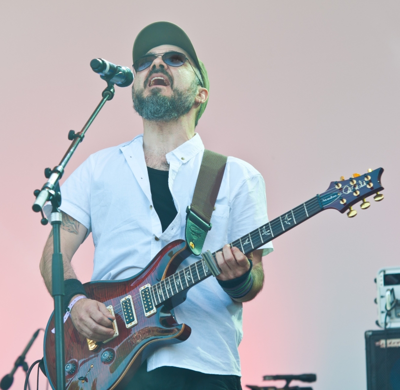 Erfreulich aufeinander eingespielt hingegen zeigt sich mit THE PINEAPPLE THIEF ein weiteres Produkt aus der Retorte: Das Geisteskind von Bruce Soord – immerhin bleibt er heuer alleiniges Gründungsmitglied – rockt und groovt tatsächlich halbwegs organisch im Gegensatz zu dem Eindruck, den seine Alben hinterlassen, was nicht zuletzt an Bassist Mark Harris liegt, dem Drummer Nick Lang mit kräftigem Punch die Bälle zuspielt, falls er nicht gerade als zusätzliche Gesangsstimme fungiert. Zudem mutet die Musik des Kleeblatts live wesentlich kompakter und weniger wie Art Rock als Alternative an, da die Gitarre ordentlich kracht und das experimentellere Material außen vor bleibt. Überwiegt somit der gute Eindruck, bleibt das Gesamtwerk aus bisher neun Alben – nicht alle repräsentiert mit dem gebotenen Dutzend Songs – in gewisser Weise bis heute ein Pastiche: ein wenig Koketterie mit den schwergewichtigen Label-Kollegen hier („Last Man Standing“), dort ein paar Singer-Songwriter-Anwandlungen, etwas Elektronik einer- und verschlungene Rhythmen („Shoot First“) andererseits, aber doch irgendwie immer noch keine eigene Identität – eine Einschätzung, zu deren Beleg man stellvertretend das ruhige Doppel aus „All The Wars“ und „My Debt To You“ anführen kann, nämlich quasi als Anathema für Arme. Dennoch, die Band bietet eine ansprechende Bühnenshow, ihr Kopf kommt ehrlich wie bissig daher, und unter den Anwesenden befinden sich nicht wenige Fans, welche die Vorstellung zwar nicht zum Triumphzug machen, aber zum ersten Mal an diesem Samstag Stimmung aufkommen lassen.