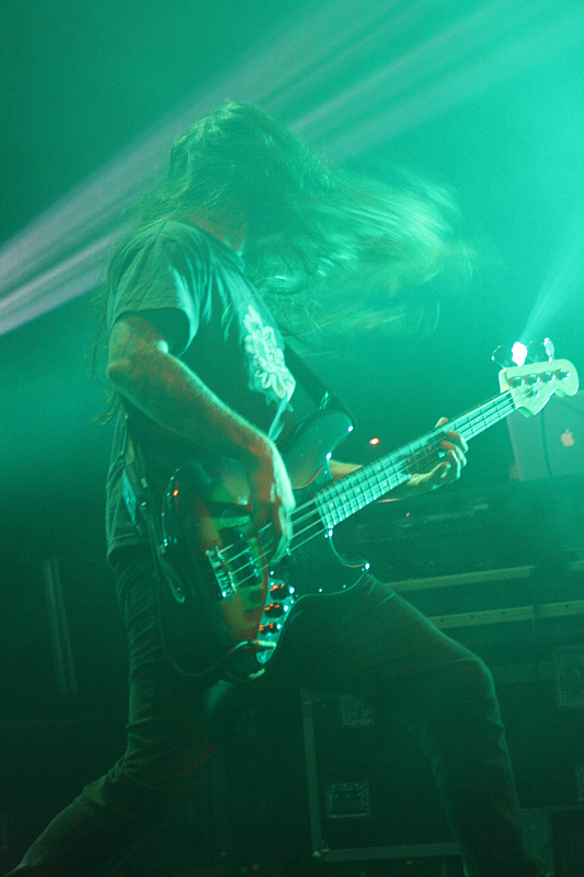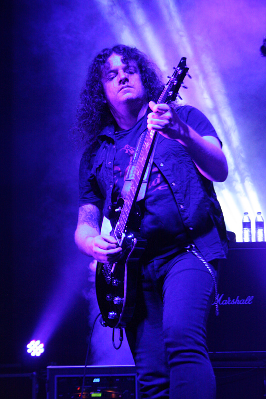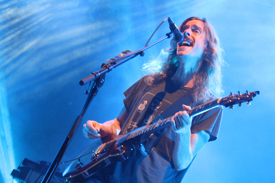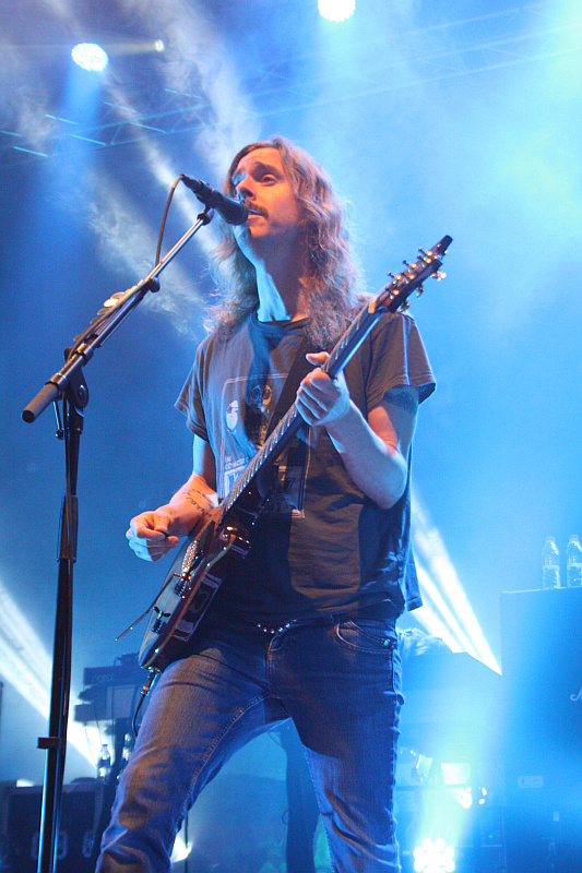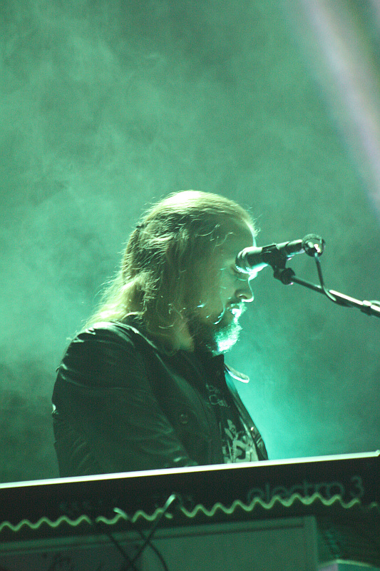 Nicht wenige OPETH-Fans befürchten, dass es mit den todesbleihaltigen Growls bei den Schweden endgültig vorbei ist. Klar, "Heritage" hatte mit den Death-Metal-Wurzeln ziemlich komplett gebrochen, was für manchen ein kleiner Schock war. Umso überraschender, dass die Progkönige um Mikael Åkerfeldt an diesem Abend eine Setlist präsentieren, bei der Klargesang nur eine Nebenrolle spielt. Und umso bedauerlicher, dass das Kölner Publikum seinem schlechten Ruf auch heute wieder alle Ehre macht. Natürlich sind OPETH keine Band, die am laufenden Band Partystimmung verbreitet, aber ein paar mehr gereckte Fäuste und vor allem mehr fliegende Haare dürfen es dann schon sein. Immerhin wird zwischen den Songs ordentich Applaus gespendet. Und gelacht, denn wie immer präsentiert der Frontmann sich als komödiantischer Alleinunterhalter mit furztrockenem Humor, wenn es um die Ansagen geht. Nicht überraschend startet die Band mit dem markanten "The Devil's Orchard" vom aktuellen Album in ihr Set, um gleich danach mit "Ghost Of Perdition" das zehnminütige Highlight vom "Ghost Reveries"-Album abzufeuern - und die alten Fans im Handumdrehen zu versöhnen, denn das charakteristische Gegrowle hat der kränklich dürr wirkende Åkerfeldt natürlich noch nicht verlernt. Bei den Instrumentalparts zieht er sich ein Stück nach hinten zurück um den Kopf zu schütteln, deutlich aktiver ist dabei aber Basser Martin Mendez, während Fredrik Åkesson seine Gitarrenparts eher regungslos absolviert. Weiter zurück in die Vergangenheit geht und somit noch ein wenig härter wird es mit "White Cluster" von "Still Life" und inzwischen weiß wohl jeder, dass man harten, komplexen Metal live kaum besser spielen kann, als OPETH es tun. Und einen besseren Sound kann man live auch nicht haben. Zwar ist es nicht sonderlich laut, dafür umso transparenter und druckvoll. Die Lichtshow ist headlinerwürdig, aber im Vergleich zur Musik, die erklingt, beinahe schon unspektakulär. Das aus "Damnation" und "Deliverance" bestehende Albumdoppel wird mit dem melancholischen "Hope Leaves" und dem härteren "Deliverance" gewürdigt, bevor die nächste Platte der Diskografie präsentiert wird. Vom überragenden