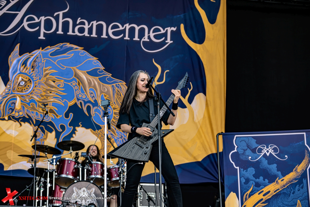 Kurz darauf übernehmen die französischen Melo-Death-Spezialisten von AEPHANEMER die Mikrofone und liefern eine energiegeladene Show zwischen Death- und Power-Metal. Vor allem Frontlady Marion Bascoul überzeugt mit fantastischem Gesang der Songs wie „Path of the Wolf“ oder „Back Again“ in gediegener Form veredelt. Daneben begeistert „The Sovereign“ mit epischer Struktur und macht Lust auf die im Herbst anstehende Tour der Band.