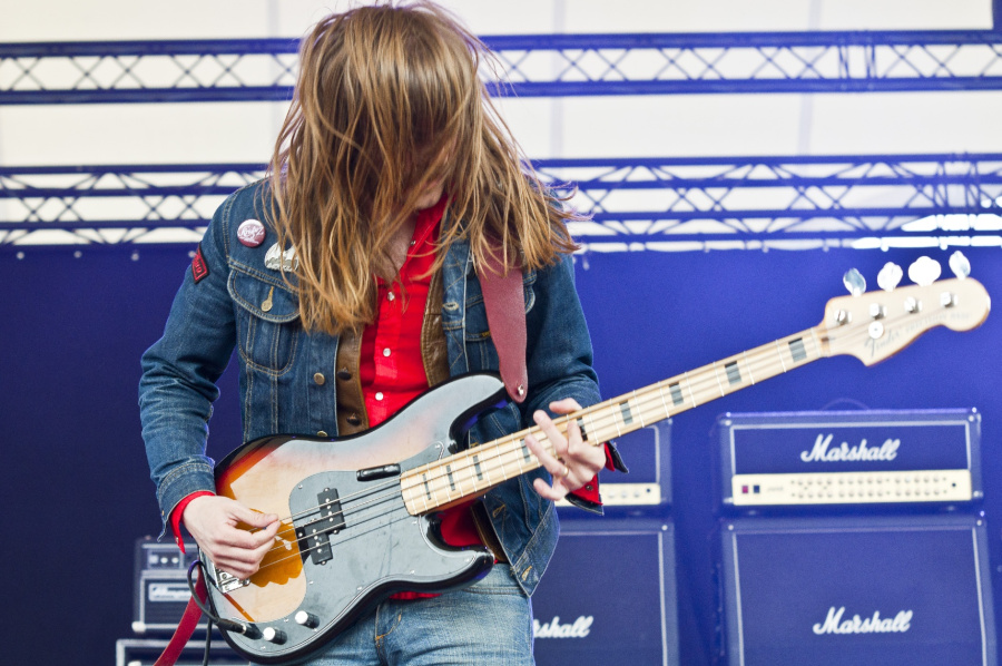 Nach SLINGBLADE spricht man auf der Bühne weiter schwedisch an diesem deutlich skandinavisch dominierten Festivaltag und tatsächlich steigen HORISONT mit "Visa Vägen", einem ihrer schwedischen Songs vom Debüt, in ihren Set ein. Allerdings hört man davon anfangs nicht viel, da man vergessen hat, das Arbeitsgerät des Frontmannes mit Strom zu versorgen. In ihrer Heimat bildet die Combo zusammen mit WITCHCRAFT und GRAVEYARD ein Retrorock-Dreigestirn, außerhalb davon gehören sie aber noch zu den unbekannteren Vertretern der momentan so florierenden Schlaghosenbranche. Optisch erfüllt die Band auf jeden Fall schon mal die Erwartungen. Drummer Pontus Jordan versteckt sich durchweg hinter seiner Haargardine und geht dabei auf seinem erhöhten Hocker locker als Maskottchen für den Beat Club durch, Gitarrist Charles Van Loo könnte in Spielpose die Vorlage für die Silhouette auf dem neben der Bühne