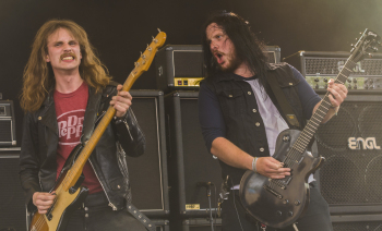 Nostalgisches haben auch die anderen Schweden von SCREAMER im Programm, allerdings setzt der Vierer aus Ljungby auf schnörkellosen Old School Metal. Neben ihren beiden starken Alben konnten sie damit bereits auch live überzeugen, etwa auf dem letztjährigen Headbangers Open Air. Seitdem hat es im Bandgefüge allerdings ordentlich gerappelt und Sänger und Bassist Christoffer Svensson hat die Band vor einigen Wochen verlassen. Da ein fester Nachfolger bisher nicht gefunden wurde, muss für den heutigen Auftritt also eine temporäre Aushilfe einspringen. Diesen Job übernimmt ihr Landsmann Burning Fire (Oskar Andersson) von Night. Dem Mann mit dem 80er-Pornobalken kann man sein Bemühen sicher nicht absprechen, er wirkt unter der Doppelbelastung mit Bass und Gesang allerdings sehr angestrengt und in seinem Auftreten ziemlich verklemmt und er muss wohl auch den ein oder anderen Text ablesen. Vor allem aber ist sein Gesang doch sehr speziell, um nicht zu sagen teilweise arg dünn. In seiner eigenen Band mag das passen (ihr Debüt kann nämlich einiges), aber für SCREAMER fehlt ihm doch die Power.