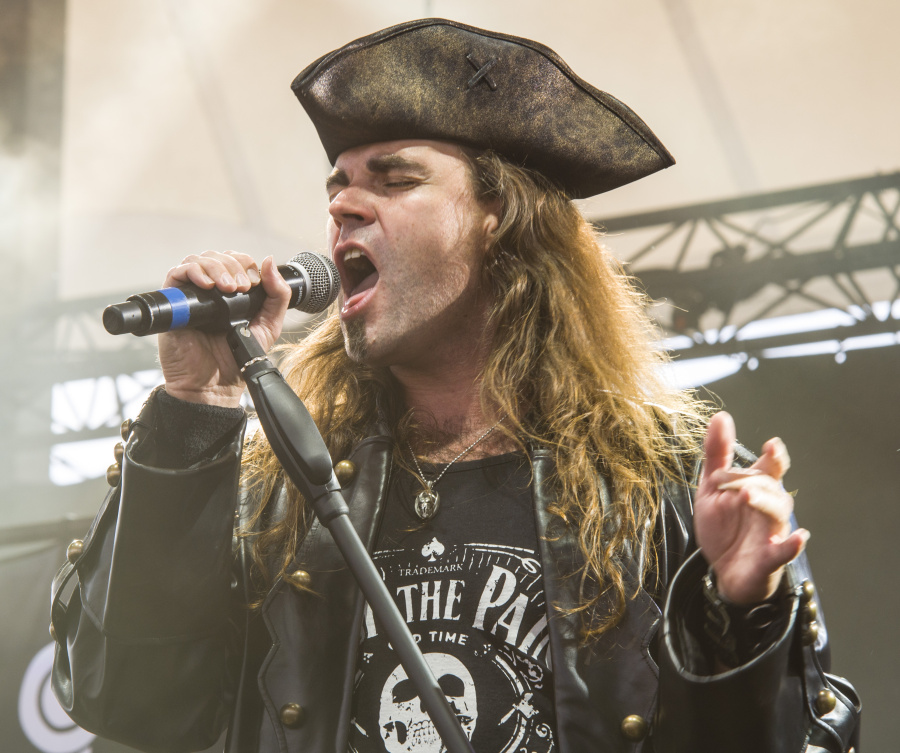 auchend den Takt angibt, spielen sich die alten Haudegen Mario Lang am Bass und Gitarrist Kalli neben ihrem agilen Frontmann (anfangs trotz Hitze noch in Ledermantel und mit Piratenhut) die Bälle zu. Nur der neue Mann an der zweiten Flying V Holger Ziegler, den Kalli von seiner anderen Band Abandoned mitgebracht hat und der den abgängigen Roger Dequis ersetzt, wirkt noch etwas zurückhaltend. Von der Songauswahl her wird es dann noch spezieller. Nummern wie "Running For The Line" (im Original von JJ"s Powerhouse), "Destiny" (Trident), "Flying High" (Hollow Ground) und "Lady Of Mars" (Dark Star) kennt der gemeine Metal-Fan wenn überhaupt tatsächlich in erster Linie von den beiden ROXXCALIBUR-Scheiben. Und "Seven Days Of Splendour" von Jameson Raid ist mittlerweile sowieso fast ihr eigener Signature-Song, dafür sorgt alleine schon die unverkennbare Stimme von Alexx Stahl, den man wirklich unter hunderten Sängern heraushört. Zwischendurch wird es mit dem Cloven-Hoof-Kracher "The Gates Of Gehenna" zwar auch mal wieder etwas bekannter, dennoch geht die Band keinesfalls auf Nummer sicher, schließlich wäre es ein Leichtes gewesen, die Zuschauer mit Klassikern von Saxon oder Iron Maiden, die durchaus auch schon mal in ihren Shows vorkommen, in Stimmung zu bringen. So bleibt es nicht weniger Großartigem aus der Metal-History wie Demons "Don"t Break The Circle" und "See You In Hell" von Grim Reaper vorbehalten, für die Gänsehaut-Momente zu sorgen. Die Publikumsreaktionen sind speziell am Ende des Sets auch wahrlich nicht schlecht, und etwas übermütig und vielleicht auch angestachelt durch den einsamen Crowdsurfer, der während des gesamten Auftritts unermüdlich seiner Leidenschaft nachgeht, lässt sich am Ende auch Basser Mario über die weiter angewachsenen Fanreihen tragen. (LS)