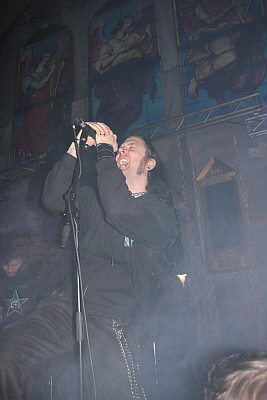 Nachdem sich wohl so manch ein Zuschauer während des Auftritts von LANTLÔS in einer der beiden nahegelegenen Burgerschmieden ein Abendessen genehmigt hat, wird es zum Auftritt des Headliners wieder deutlich voller im Kulttempel. Doch bevor NOCTE OBDUCTA endlich loslegen können, wird die Geduld der Zuschauer durch die erwähnten technischen Schwierigkeiten arg auf die Probe gestellt. Zwar ist die Band recht früh startklar und steht versammelt auf der Bühne, bis es aber tatsächlich losgehen kann, vergeht noch eine halbe Ewigkeit. Sänger Torsten versucht, die Leute mit Sprüchen bei Laune zu halten, die Band stimmt zwischendurch mal ein bisschen Unterhaltungsmusik an und gegen 23.15 Uhr ist es dann doch soweit – dem ursprünglichen Zeitplan hinkt man da schon eine Dreiviertelstunde hinterher. Zwar haben NOCTE OBDUCTA ihren eigenen Soundmann dabei, der jedoch scheint auch nicht so recht mit der Haus-PA zurechtzukommen. Der Sound ist verhältnismäßig leise und auch ein bisschen matschig – da hatten die Vorgruppen teilweise einen besseren Sound. So nonkonform wie NOCTE OBDUCTA auf Platte agieren, so präsentieren sie sich auch auf der Bühne. Sänger Torsten präsentiert sich als echter Metal-Fronter mit ordentlichen Posen, Bassist Heidig dagegen ist die personifizierte Schlaftablette. Er steht die ganze Zeit seitlich zum Publikum und stiert Löcher in die Luft, während er seinen kopflosen Bass bedient.