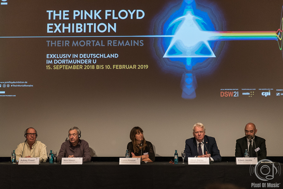 Am 14. September 2018 hatte ich also die Gelegenheit zumindest ein Gründungsmitglied von Pink Floyd im Rahmen der Pressekonferenz zur Eröffnung der multimedialen Erlebnisausstellung im Dortmunder U persönlich zu treffen. Für mich als Pink Floyd Fan, der es leider nie geschafft hat, ein Pink Floyd Konzert live mitzuerleben, war dies ein besonderer Moment. Ich war aufgeregt, als ob ich zuvor nie an einem offiziellen Fototermin teilgenommen hätte. Die PK selber gestaltete sich jedoch ebenso unaufgeregt wie jede andere PK auch.