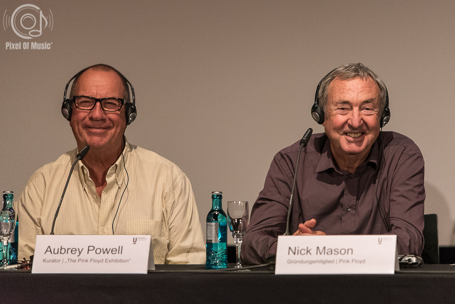 Nick Mason, Gründungsmitglied und Drummer der Band, und Aubrey Powell (Kurator der Ausstellung), der gemeinsam mit Storm Thorgerson in den 1960’ern die britische cover-design Agentur Hipgnosis gründete, wirkten zu Anfang eher gelangweilt und strahlten so etwas wie „Another fucking press conference!“ aus. Im Laufe des Pressetermins wurden Sie aber deutlich lockerer und waren auch zu kleinen Scherzen aufgelegt.