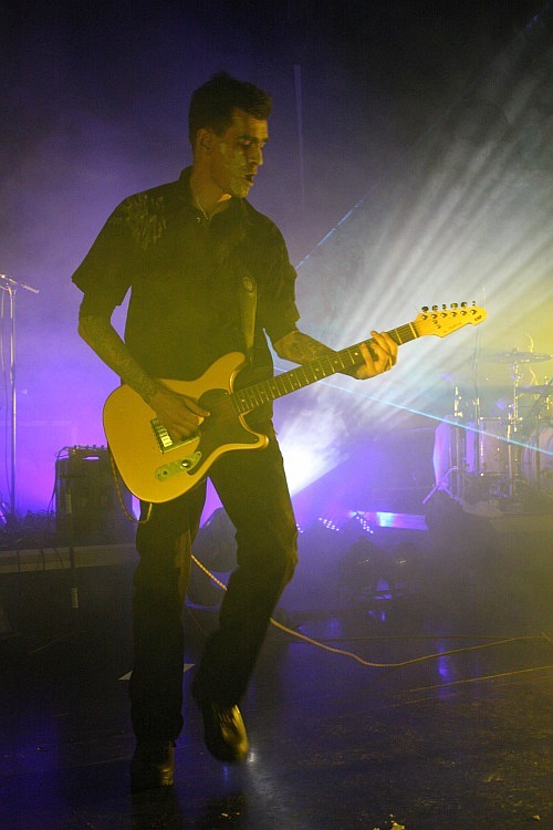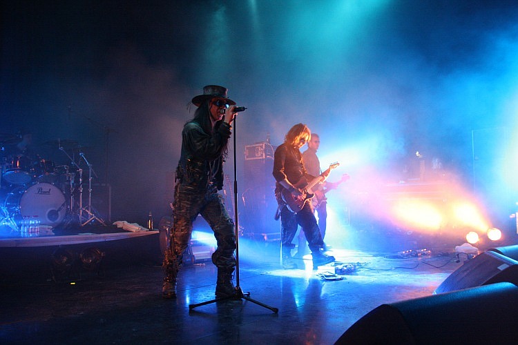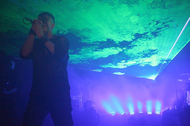 PROJECT PITCHFORK sind zwar erst die vierte Band des Abends, doch die Zeit ist schon deutlich weiter fortgeschritten, als man erwartet und so ist es weit nach 23 Uhr, als die populäre Hamburger Formation in ihr Set einsteigt, das heftig bejubelt wird. Die Lichtshow ist eines Headliners würdig und so kommt auch ein Laser zum Einsatz, der für stylische 80er-Atmosphäre sorgt. Sänger Peter Spilles präsentiert sich genauso als Aktivposten wie der fröhlich herum hüpfende Gitarrist Carsten Klatte und Keyboarder Dirk "Scheubi" Scheuber, der mit seiner Wuschelfrisur auffällt und das Publikum immer wieder anheizt und zum Mitmachen animiert. "Timekiller", der wohl größte Hit der Band folgt bereits als dritter Song nach "Conjure" und "Endless Infinity". Mit "En Garde!" und "Souls" legt man dann zwei Klassiker nach, bevor man sich mit "Beholder" erst dem neuen Album widmet, um dann mit "Human Crossing" wieder eine ältere Nummer nachzuschieben. Da man schließlich in Köln spielt, darf "Carnival" nicht fehlen, im Endspurt geht es mit "Fire & Ice" und "The Longing" zurück in die 90er, bevor "Existence" und "Rescue" das Ende eines absolut gelungenen Sets markieren, der kaum Wünsche offen lässt - auch wenn "Steelrose" und "Carrion" in der Setlist vermisst werden.