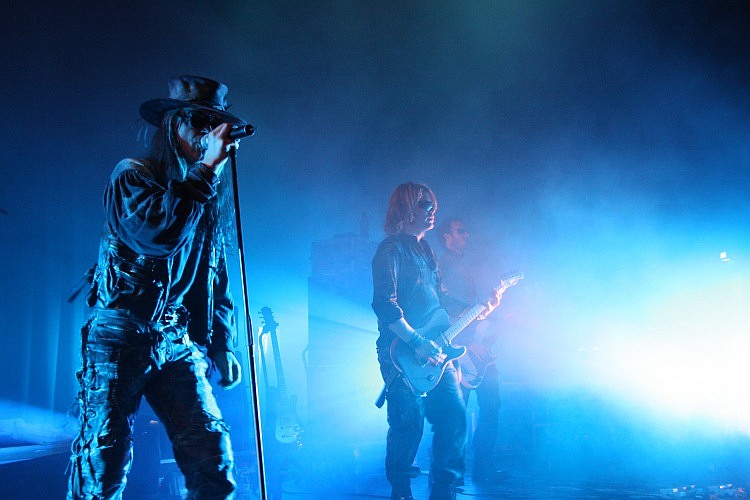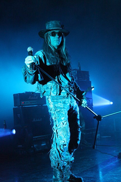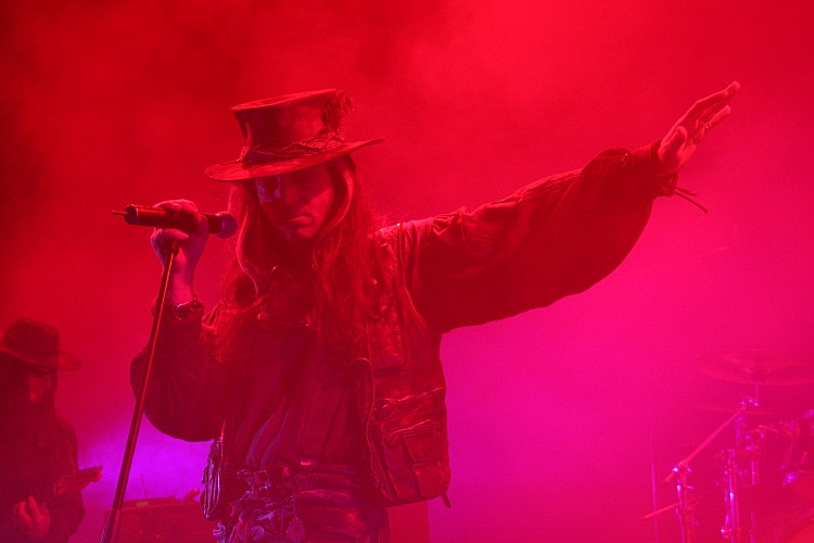 Die langen Umbaupausen nerven schon den ganzen Abend, die Grenze des Zumutbaren wird dann aber weit überschritten, als sich über 45 Minuten lang fast nichts auf der Bühne tut. Die Aufbauarbeiten der Crew, die befremdlicherweise aussieht, als würde sie zu einem HipHop-Act gehören, sind längst beendet, hin und wieder schlurft nochmal jemand über die Bretter, doch von den FIELDS OF THE NEPHILIM ist lange Zeit nichts zu sehen. In der Zeit hätte man übrigens auch mal noch ein paar Backdrops oder ähnliche Bühnendeko aufbauen können, was aber nicht der Fall ist. Rein optisch bekommt man so gut wie nichts geboten und auch als die Band irgendwann doch loslegt, gibt es lediglich eine passable Lichtshow, was für einen Headliner sehr mager ist. Von den ursprünglichen FIELDS OF THE NEPHILIM ist bekanntlich nur noch Mastermind Carl McCoy übrig, seine Begleitband ist indes nichts anderes, als genau dies. Wie die Ölgötzen stehen die Musiker mit ihren Sonnenbrillen auf der Bühne und bewegen sich kaum. Die komplette Show ist auf den Frontmann ausgerichtet, der mit seinem unglaublichen Charisma, diesem eiskalten Blick (trägt McCoy eigentlich Kontaktlinsen?) und seiner Grabesstimme aber eine Unmenge an Ausstrahlung hat. Da es aber wenig zu sehen geht, kann man sich ganz den Klängen widmen, die von den Musikern gut, aber nicht überragend gespielt werden, zudem ist der Sound auch nicht optimal, besonders der markante Bass ist auf der linken Seite vor der Bühne kaum zu hören. Doch genug gemeckert, denn wenn eine Band Songs wie "Preacher Man", "The Watchman", "Endemoniada", "Moonchild" "For Her Light", "Sumerland (What Dreams May Come)" und "Psychonaut" auf der Setlist stehen hat, kann ein Konzert letztlich nur großartig sein und verursacht so manche Gänsehaut. Zugaben werden natürlich auch verlangt und so gibt es zum Schluss noch "Chord Of Souls" und - überraschenderweise - "Mourning Sun" statt "Last Exit For The Lost".