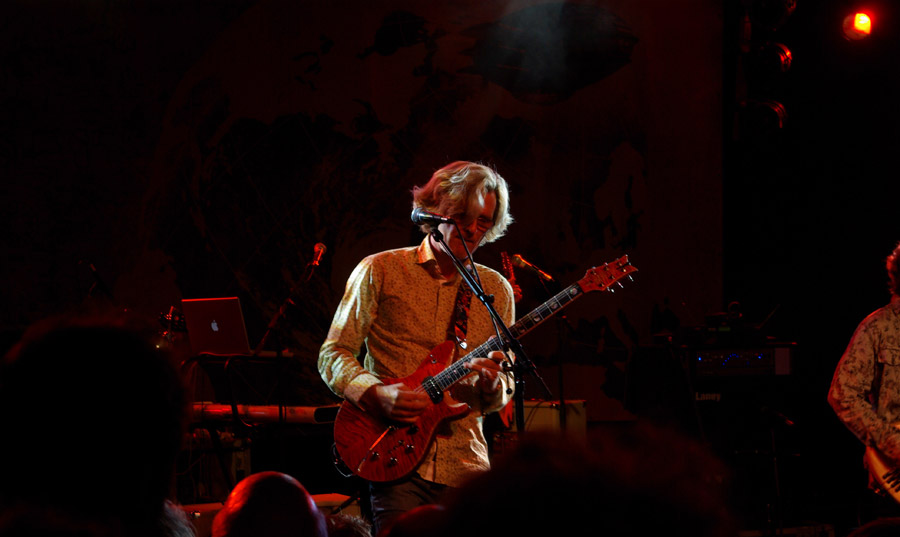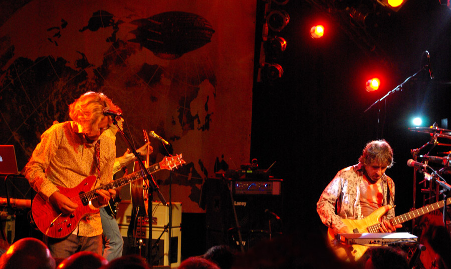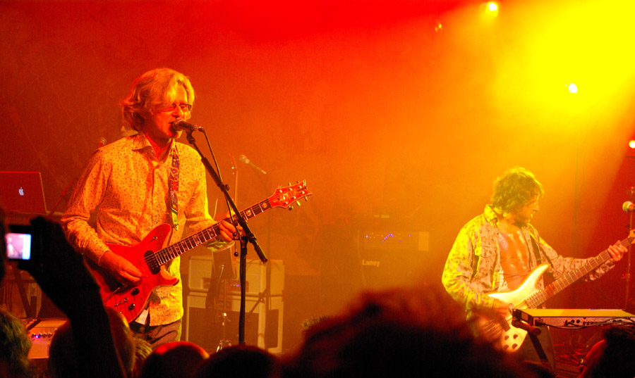 den 25-Minüter zu einer grandiosen Live-Nummer macht. Stimmungsvoll wird’s danach mit „We All Need Some Light“, das mit einem gefühlvollen Gitarren-„Duell“ zwischen Morse und Stolt beginnt und dann erstaunlicherweise vom FLOWER-KINGS-Kopf persönlich und erstaunlich gut gesungen wird. Auf Balladen hat das Quintett Bock heute Abend, denn der „Bridge Across Forever“-Titeltrack wird ebenfalls zum Besten gegeben. Partystimmung kommt auf, als Morse den DREAM THEATER-Drummer vom Schlagzeug vertreibt. Letzter trägt als eingefleischter Lost-Fan mittlerweile einen Overall der Dharma-Initiative und singt mit Gildenlöw im Fistelstimmen-Duett.
