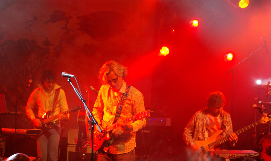 Mike Portnoy (DREAM THEATER) verzichtet liebenswürdig auf seine drei Bass-Drums und begnügt sich mit einer einzigen Fußtrommel. Etwas ungewöhnlich direkt vorne am rechten Bühnenrand positioniert, haben die Zuschauer einen deutlich besseren Blick auf Portnoys Spieltechnik, als das bei einem DREAM THEATER-Konzert der Fall ist. Ganz links positioniert sich Neal Morse (ex-SPOCK’S BEARD) hinter seiner Keyboard-Kanzel, während Roine Stolt (THE FLOWER KINGS) und Pete Trewawas (MARILLION) ein Duo in der Mitte bilden. Im Hintergrund bedient der PAIN OF SALVATION-Frontmann Daniel Gildenlöw zusätzliche Gitarren, Keyboards und diverse Percussion-Gimmicks.