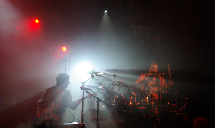 Los geht’s mit dem kompletten Titeltrack des letzten Albums. Und siehe da, die altgedienten Prog-Recken scheinen noch jede Menge Lust auf Bühne zu haben, denn den fünf Herren sprüht die Spielfreude nur so aus den Augen. Das knapp 80 Minuten lange Epos zehrt natürlich kräftig an der Kondition, denn nach dem ersten Song sind erst einmal 15 Minuten Pause angesagt. Der Sound geht in Ordnung. Zwar wummern die Bässe hin und wieder allzu kräftig, aber mit den richtigen Live-Ohrstöpseln (bloß kein Ohropax!) ist jedes Instrument herauszuhören und die Melodien gehen auch nicht in Portnoys Schlagzeug-Gewittern unter. Zuschauer ohne Ohrenschutz beklagen hingegen die zu hohe Lautstärke.