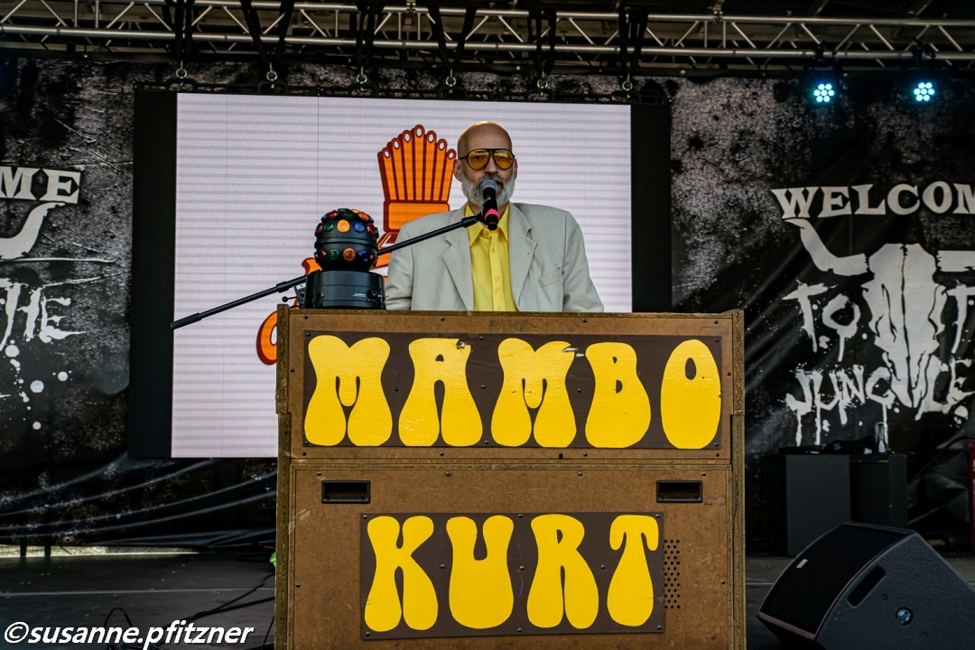 Direkt im Anschluss heißt es rüber zur Welcome to the Jungle Stage, wo MAMBO KURT – seit Jahrzehnten eine absolute Wacken-Kultfigur – mit seiner Heimorgel auftritt. Sein Markenzeichen: bekannte Rock- und Metaklassiker im schrillen Bierzelt- und Lounge-Stil, dazu jede Menge schräger Humor. Heute gibt es eine spontane Einlage: Eine freiwillige „Mambo-Tänzerin“ aus dem Publikum entert die Bühne, improvisiert eine mitreißende Show und erntet tosenden Applaus. Unter strahlendem Sonnenschein grölen hunderte Fans die Refrains mit – man könnte fast vergessen, dass man auf einem Metal-Festival ist.
