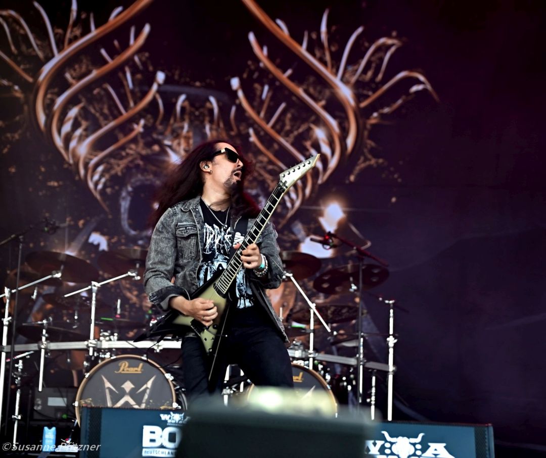 Nächster Stopp: DESTRUCTION auf der Louder Stage (13:45). Die Thrash-Metal-Urgesteine aus Weil am Rhein liefern gewohnt kompromisslos. Pentagramme und Dämonen zieren das Backdrop, und schon beim ersten Song muss am Schlagzeug etwas repariert werden – der Drummer spielt einfach durch, als wäre nichts passiert. Das Publikum dankt es mit unzähligen „Pommesgabeln“ in der Luft.