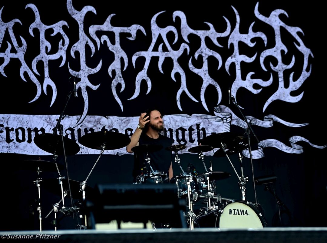 Zurück zur Louder Stage: DECAPITATED. Die polnischen Death-Metal-Veteranen werden von den Fans regelrecht auf die Bühne gerufen. „From Pain to Strength“ lautet ihr Motto – und sie meinen es ernst. Blastbeats wie Maschinengewehrfeuer, Gitarrenriffs wie Kettensägen. Meine Ohren nehmen es sportlich – oder tun zumindest so.