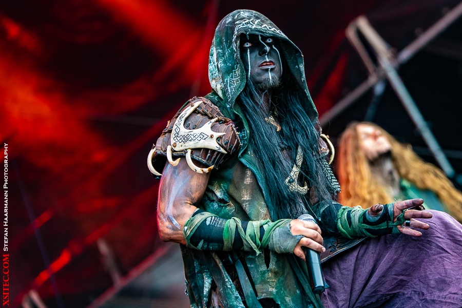 Danach mache ich einen Abstecher zur WACKINGER-Stage, auf der die farbenprächtigen GERNOTSHAGEN die Menge vor der Bühne ordentlich in Stimmung bringen. Neben den prächtigen Kostümen und der passenden Kriegsbemalung, liefert die Truppe auch eine starke Bühnenshow. Ein grandioser Gig.