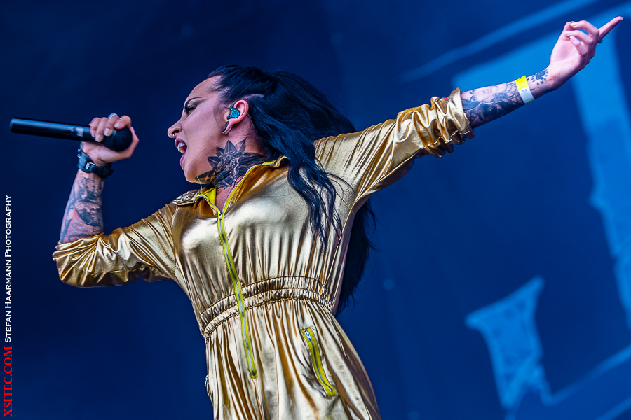 Bereits um 11.00 Uhr betreten JINJER die LOUDER-Stage, um ihren Teil des Frühsports beizusteuern. Tetiana Shmailiuk ist in ihrer Eigenschaft als Vorturnerin voll in ihrem Element. Während die Bandkollegen ihr Pensum routiniert abspulen, zeigt die Dame eindrucksvoll, was es im Jahr 2019 heißt, Teil des Metal-Business zu sein. Perfekt gestylt, gut eingesungen und voller Energie growlt sie sich durch das Set. Keine Spur von Müdigkeit ist zu spüren. Die Fans sind daher auch schlagartig wachgerüttelt und feiern die Band. Ein ganz starker Auftritt.