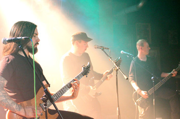 Als FEN die Bühne betreten, finden sich davor immerhin rund 40 Gäste ein. Und die werden für ihre Anreise mit einem Auftritt belohnt, der sich gewaschen hat: Einen Song braucht das Trio, um sich warmzuspielen, und allen voran Frank alias The Watcher strotzt vor unbändigem Willen, (musikalisch) die Sau rauszulassen. Kurz vor dem Gig hatte er sich eine kleine Schnittwunde an der rechten Hand zugezogen, doch nach wenigen Minuten sitzt jeder Griff, und FEN spielen sich in einen Rausch. Bereits vor über vier Jahren haben die Engländer im Vorprogramm von Agalloch ihr Potential angedeutet, nun kommt es zur Entfaltung: Es ist eine Ohren- und Augenweide, wie Grungyn seinem Bass klangliche Nuancen vom feinfühligen Anschmiegen an einzelne Töne bis hin zum brachialen Gewitter entlockt. Ich könnte ihm dabei wohl stundenlang zuhören und -gucken.