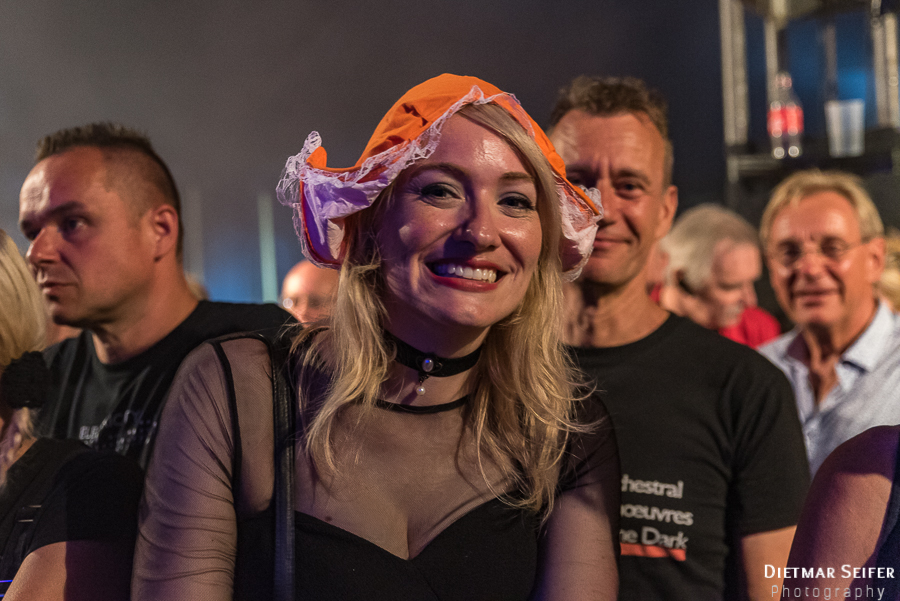 Ansonsten kann man natürlich die beiden Locations auch nicht miteinander vergleichen. Die Lightshow hat mir in der Mitsubsihi Electric Halle etwas besser gefallen. Störend war auch, dass einer der Zeltmasten fast direkt mittig vor der Bühne stand und somit vielen Gästen die Sicht versperrte. Der Sound war gut abgemischt und die Gäste waren Bombe drauf. Es dauerte nicht lange und unter der Plane wurde die größte Zeltparty außerhalb von Renesse gefeiert. Selbst aus dem benachbarten Holland waren deutlich erkennbar OMD-Jünger(innen) angereist.