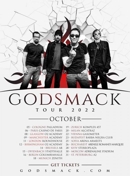 Endlich heißt es auch für die Jungs um Sully Erna wieder raus aus dem Proberaum und rauf auf die Bühnen der Welt. Vier Termine stehen im Rahmen ihrer European Tour 2022 in Deutschland auf dem Plan, und neben den Shows in Offenbach, Berlin und München, werden GODSMACK am 05. Oktober im Palladium in Köln zu Gast sein.